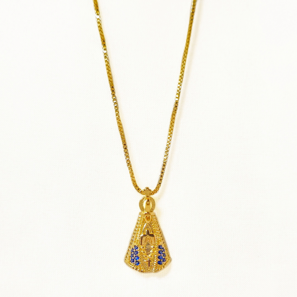 - Design: Gargantilha com imagem de Nossa Senhora;